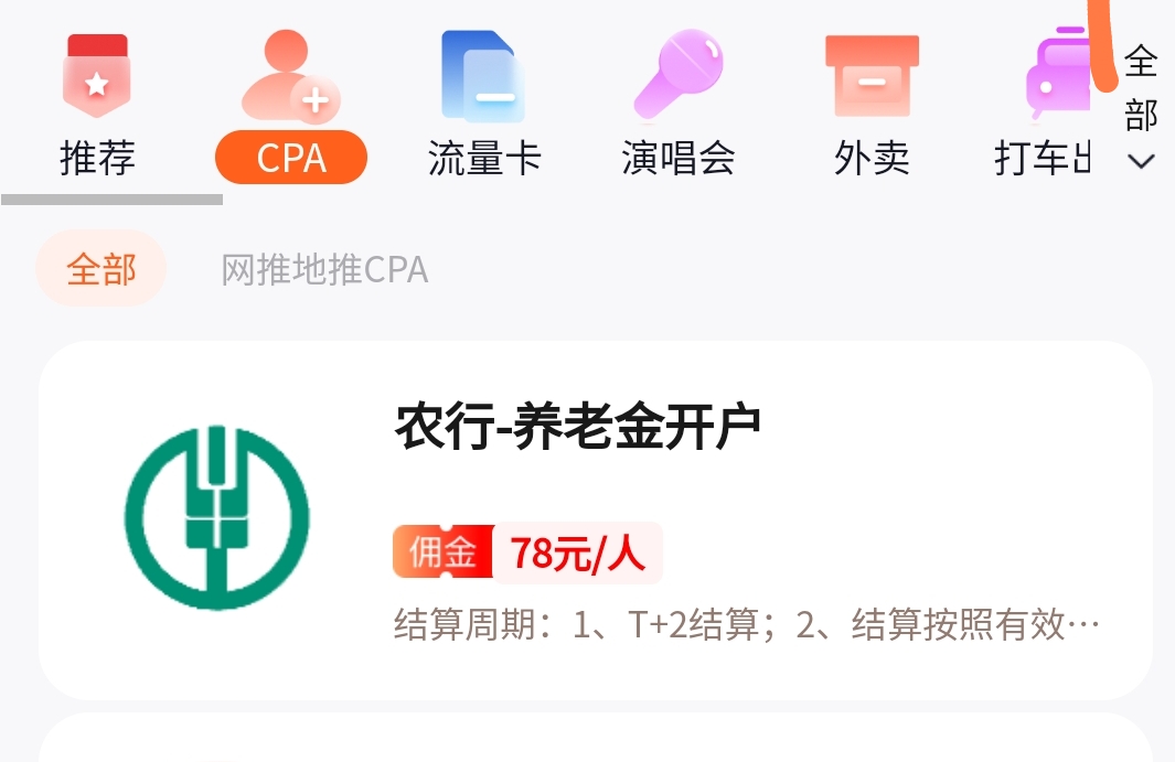 养老金推广项目推广码申请,比如有农行工行华夏广发银行养老金预约开户87元佣金,找自己家里几个亲戚朋友就可以完成,对接一手渠道不抽任何佣金,非常适合地推和社群推广,其实咱们平台已经上线一段时间了,并且持续不断上新中,当然还有热门的小红书CPA拉新、免费流量卡、以及随身WIFI等,加入合伙人,全部拥有包括以后的上新项目都可以使用。